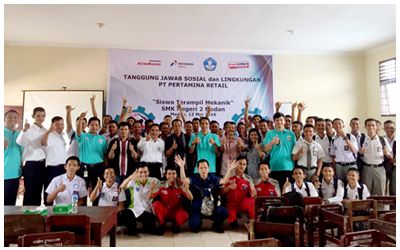 MEDAN - PT Pertamina Retail melalui program Corporate Social Responsibility (CSR), dalam rangkaiannya saat ini bekerja sama dengan SMK Negeri 2 dan SMK Tehnik Budi Agung Medan untuk menyelenggarakan Kegiatan program “Siswa Terampil Mekanik” dimana dalam kegitan tersebut para siswa SMK diberikan pelatihan dan peraktek penggantian Pelumas motor.
